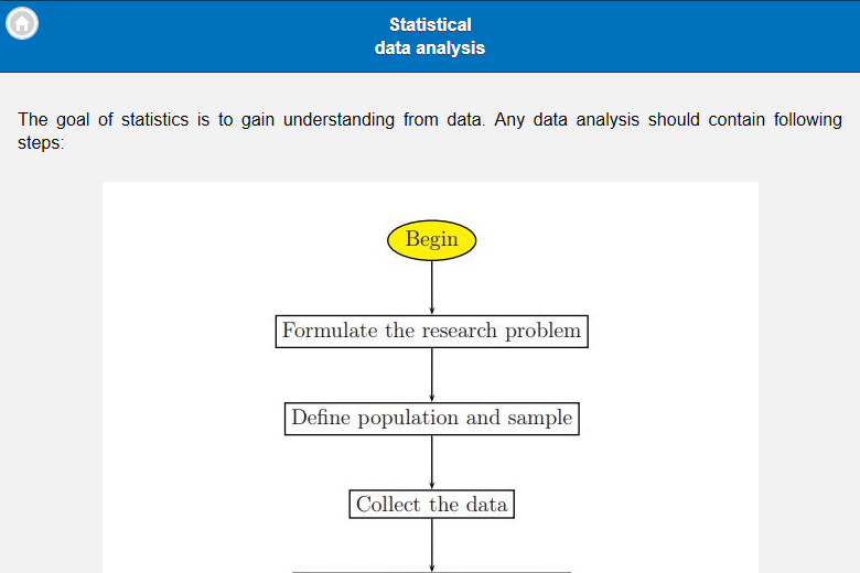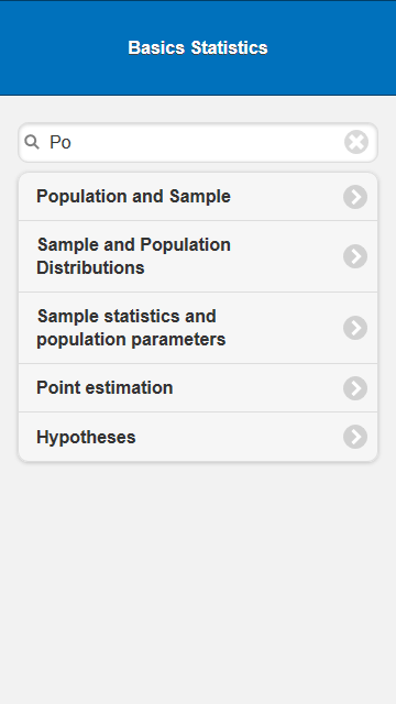 Это базовое статистическое приложение имеет удобный интерфейс с возможностью поиска по темам. Это обогащает информацией. Пошаговое руководство и пример включают в это приложение.