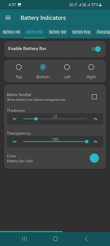 Панель батареи: добавьте линию питания на экран телефона с множеством опций для индикации уровня заряда батареи.