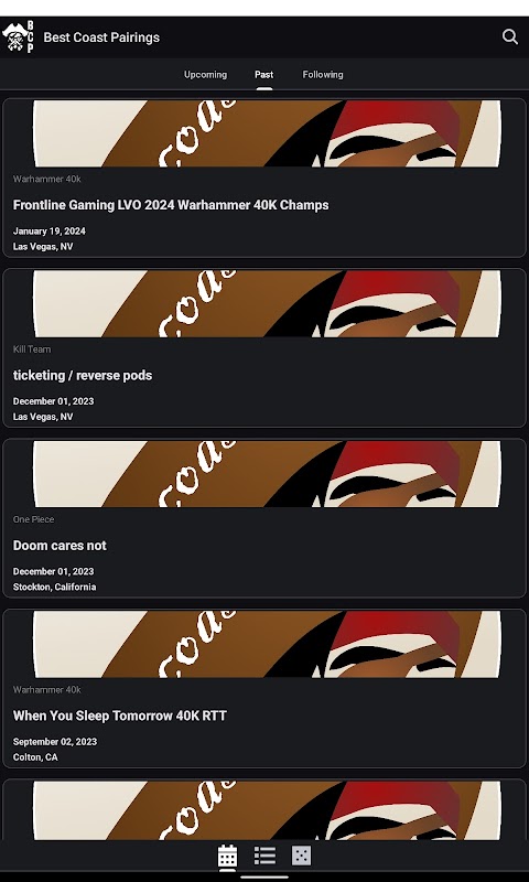 Когда организатор мероприятия использует Best Coast Pairings, наше приложение обеспечивает удобство работы с мобильными устройствами. Бесплатный доступ ко всему: от регистрации до итоговых результатов во время участия в мероприятии.
