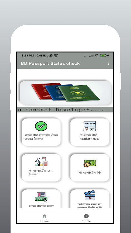 অ্যাপটি দ্বারা এমআরপি বা ই-পাসপোর্ট স্ট্যাটাস চেক / নির্দেশনা / আবেদন কিভাবে করতে হয় তা শেখানো হয়েছে