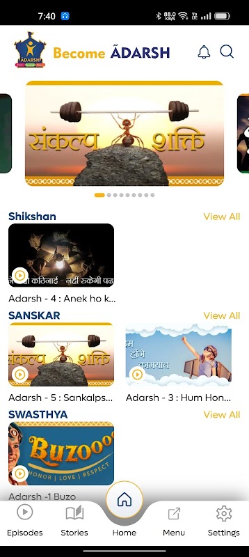 Это инновационное приложение позволяет получить доступ к учебным материалам курса «Стань Адаршем». Пользователи получают доступ к библиотеке, содержащей эксклюзивные видеоэпизоды, каждый из которых содержит эпические, вдохновляющие и потенциально изменяющие жизнь моральные истории, основанные на образовании, здоровье, моральных ценностях и многом другом.