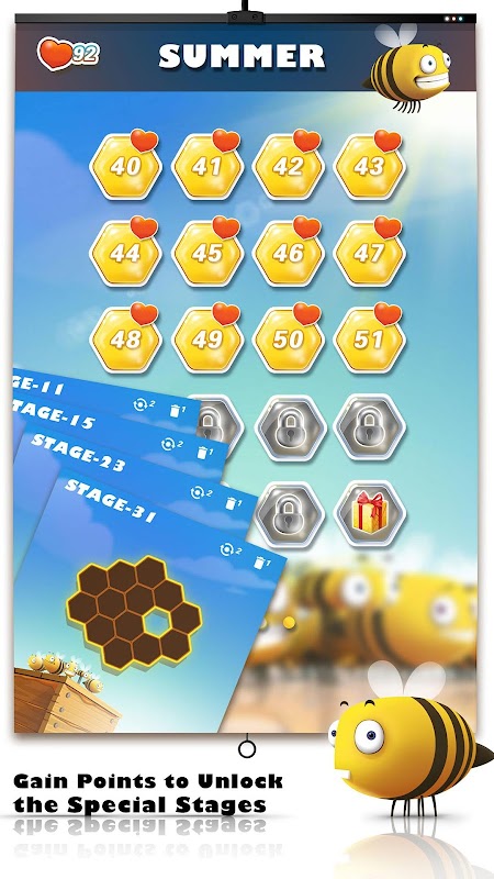 Fill up the whole beehive frame means you win, and will gain a bee’s red heart.