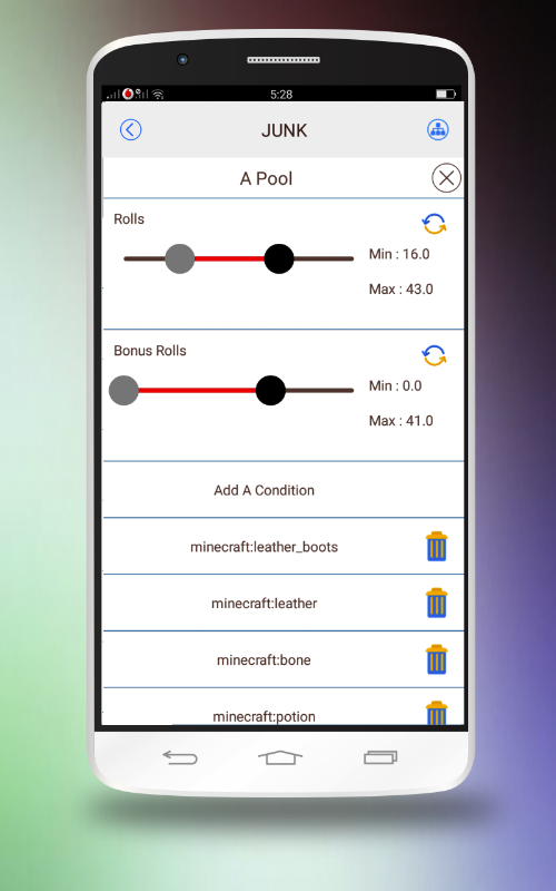 3. Use Loot Tables ,Loots Tables can define custom loots (items/blocs set), choosed randomly respecting some rules. You want a chest with 5 to 10 random colorized wool bloc inside? Loots Tables are made for that! You want a mod drop a sword with a custom enchantment only when a player kill it ? Loots Tables are the solution!