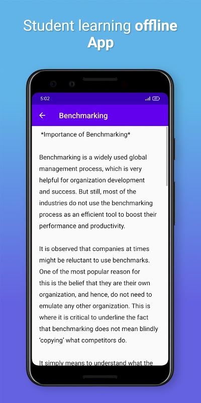 Бенчмаркинг - один из важных курсов для студентов. Бенчмаркинг - это практика сравнения бизнес-процессов и показателей производительности с лучшими отраслевыми стандартами и лучшими практиками других компаний. Обычно измеряются такие параметры, как качество, время и стоимость. Студент сможет узнать о концепции сравнительного анализа для использования этого приложения.