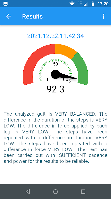 Данные хранятся локально и могут быть загружены в вашу Личную Область на balancedgait.com