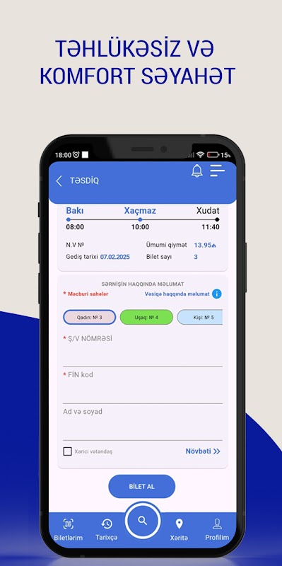 Для покупки онлайн билета пассажир может использовать Biletim.az