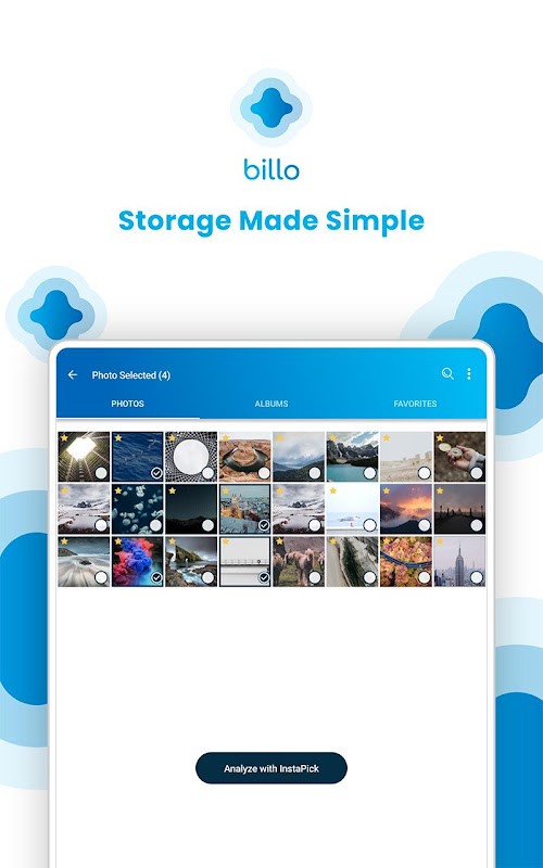 • PhotoPick: Choose the best photo for your Instagram posts with the PhotoPick analysis toolSync your Social Media posts: You can archive photos you share on Facebook and Instagram to Billo.