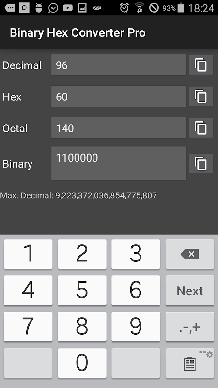 Binary Converter Pro is a simple application to perform transformations between the most used computer numbering systems. The application supports the following numbering systems: