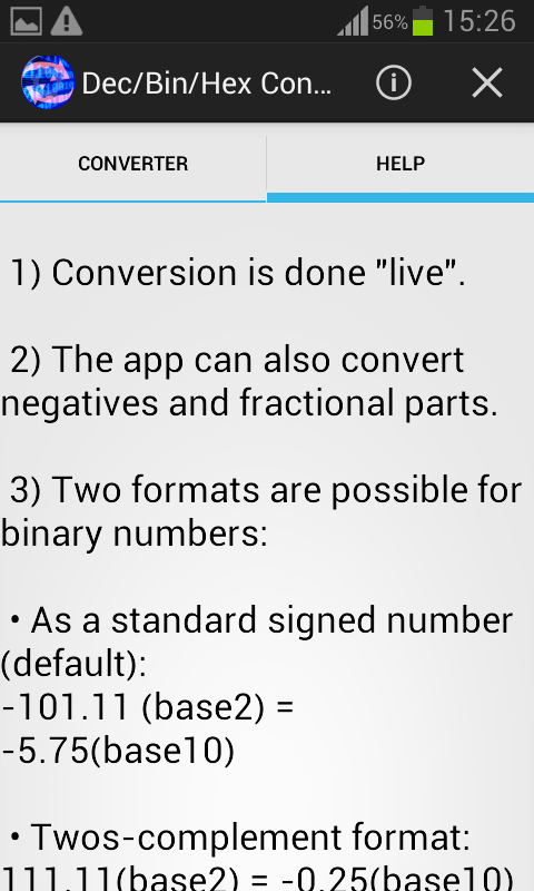 A useful tool for computer scientists, engineers, mathematics and many more that can help boot your productivity. It provides a fast way to find number representations in decimal, binary, and hexadecimal numbers and can also convert between fractional and negative numbers. It also supports twos complement format for binary numbers. It can be used for educational purposes as a tool to help students in various design projects and also for practicing and proofing their homework.