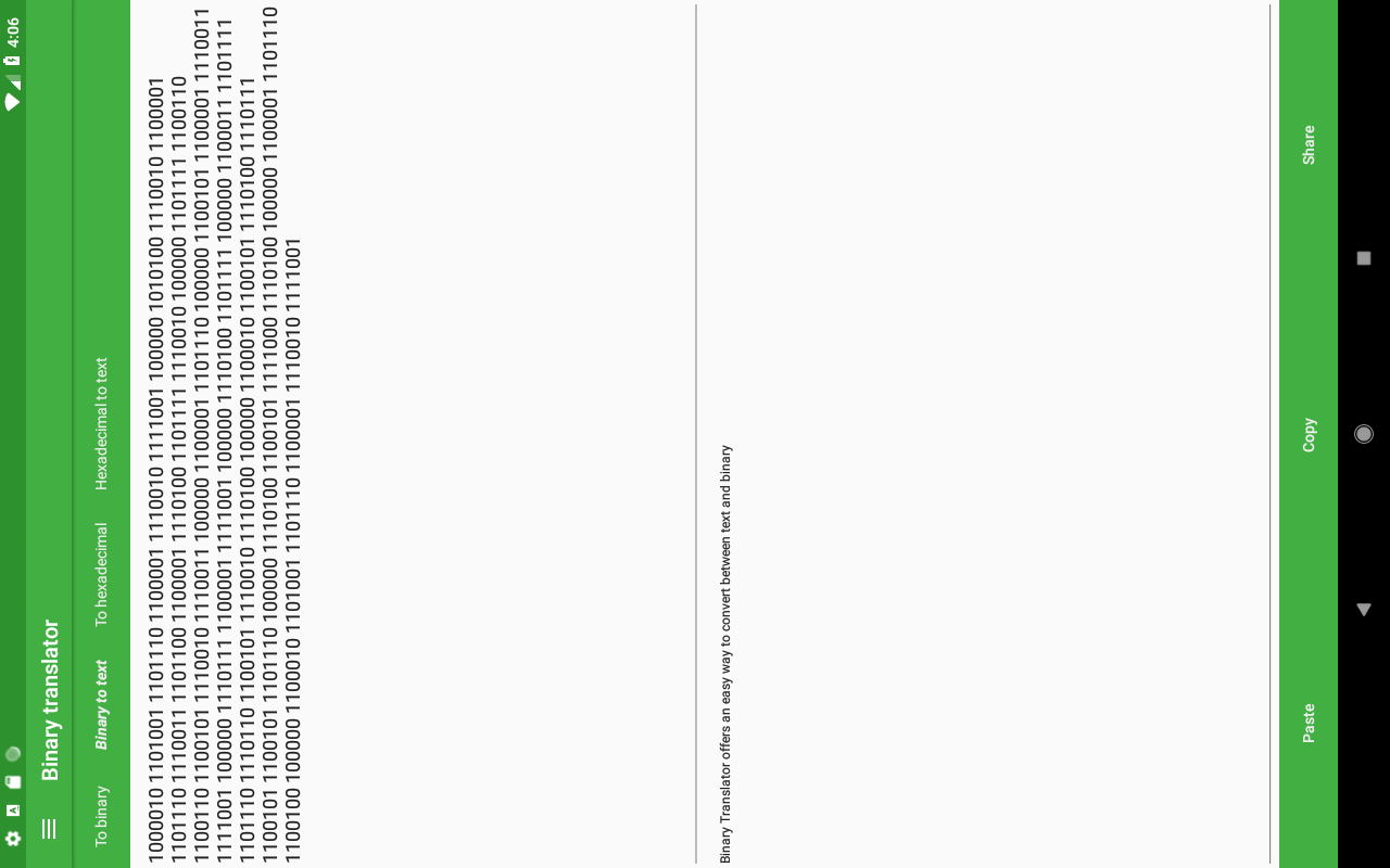 Это приложение предлагает простой способ преобразования в двоичный и текстовый
