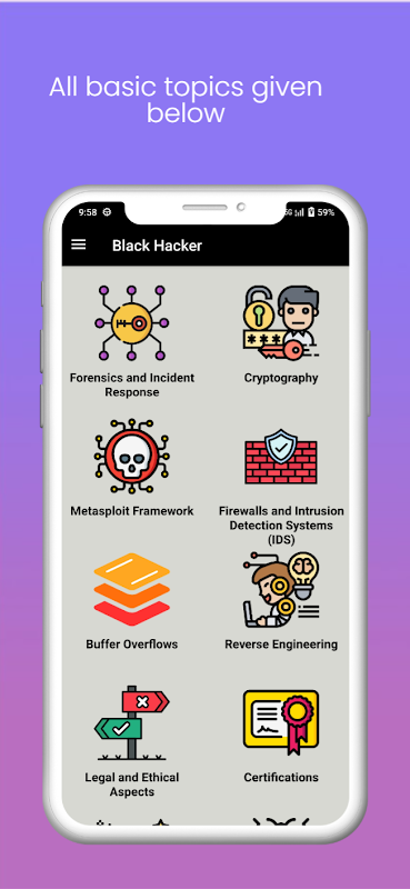 В этом приложении добавлены все типы этических методов взлома, а также показано, как предотвратить хакер любого типа. Это руководство по применению, чтобы знать все о кибербезопасности.