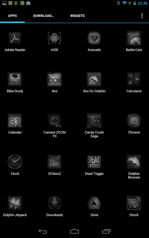 Important: theme only works on Nova, apex, adw, action and smartlauncher. Future update to make it work on go and holo launcher are still in progress.