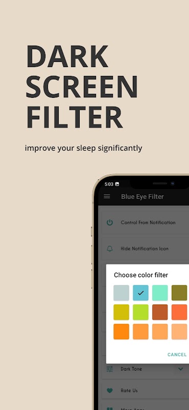 Приложение применяет цветной фильтр наложения на экране вашего устройства, чтобы затемнить экран. Помогает избежать головной боли и боли в глазах ночью.