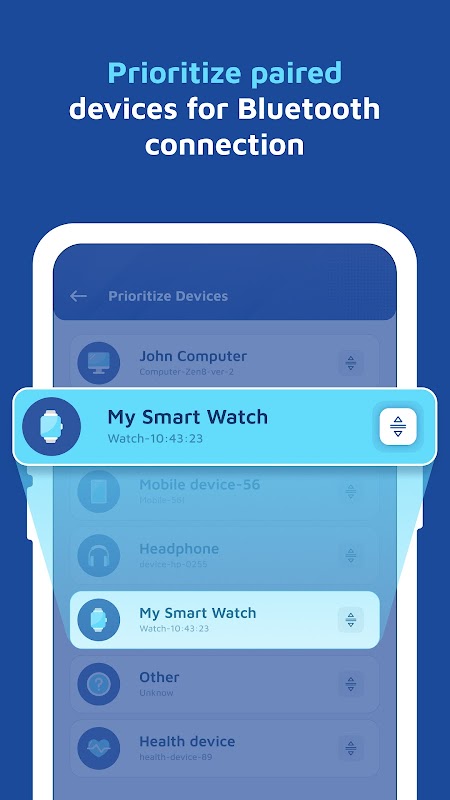 - Установите приоритетный список сопряженных устройств и автоматически подключайте их, когда они находятся в пределах досягаемости.