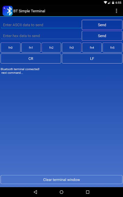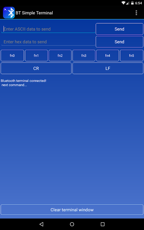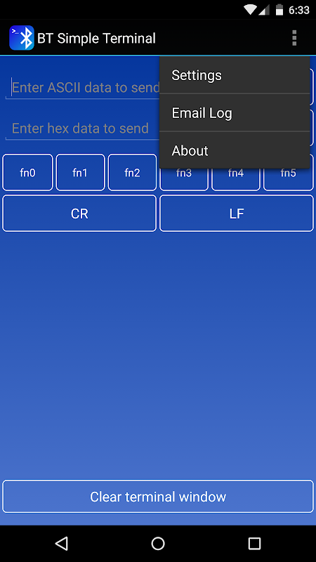 Send ASCII or hex data direct to the connected device. Quick access custom function buttons to send any ASCII string. Carriage return and line feed.