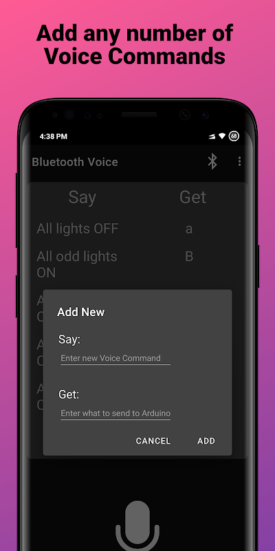 This app will send voice commands directly to serial or map your commands to anything you want to send in its place.
