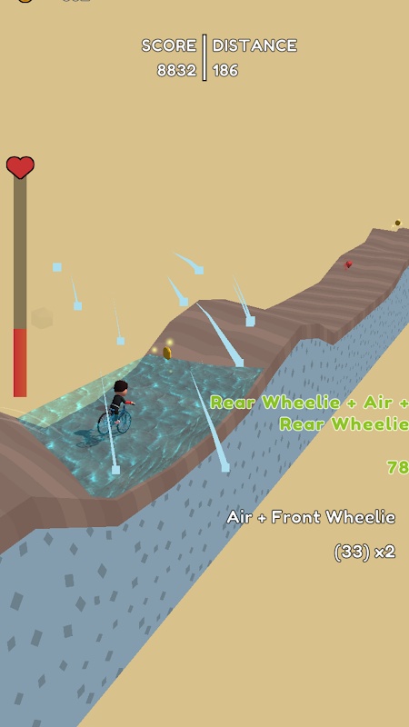 Try to get as far as possible, perform stunts to score points, customize your character and bike, level up and improve your skills.