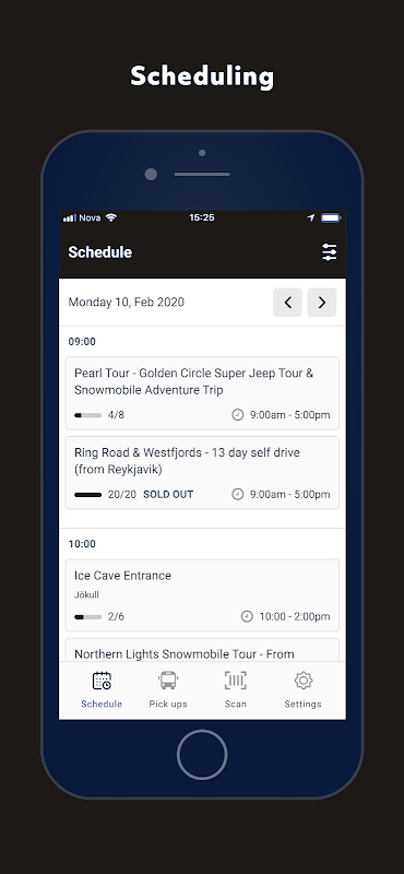 Подготовьте свой день и следите за своим бизнес-календарем. Добавляйте или удаляйте направляющие из расписания и обрабатывайте свои заказы быстро и легко