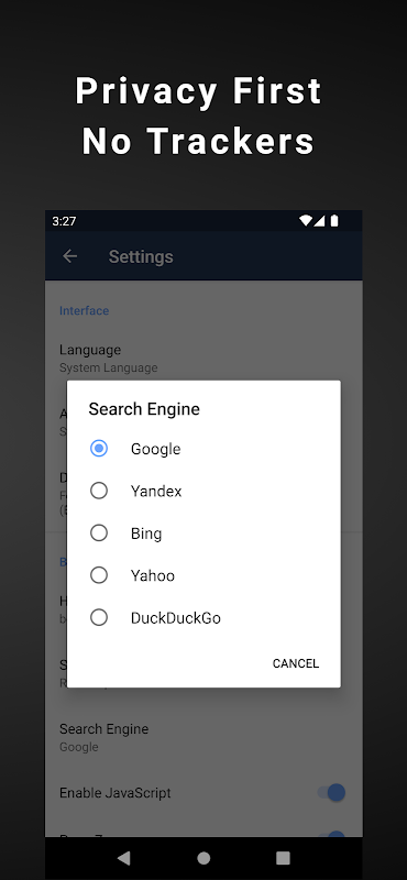 Используя Bolt Mini: Fast Web Browser, переключайте поисковые системы по своему усмотрению. Мы предоставляем Google Search, Yahoo Search, Yandex Search, DuckDuckGo Search и Bing Search.
