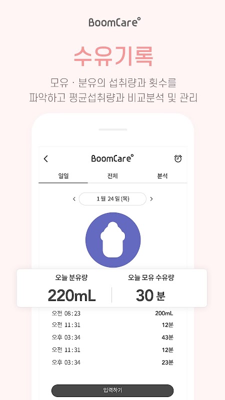 Oписание Boomcare(분유, 체온, 수면, 배변, 육아)