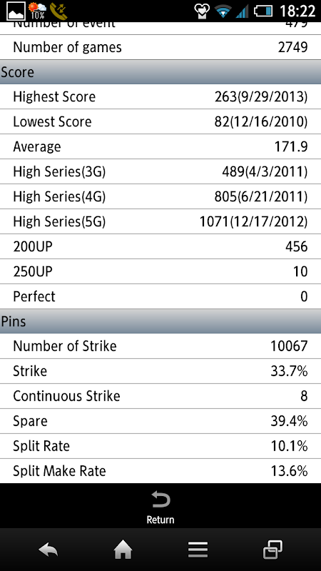 BowlingScorer можете записать свой поклон счет легко и анализировать многие графиков.