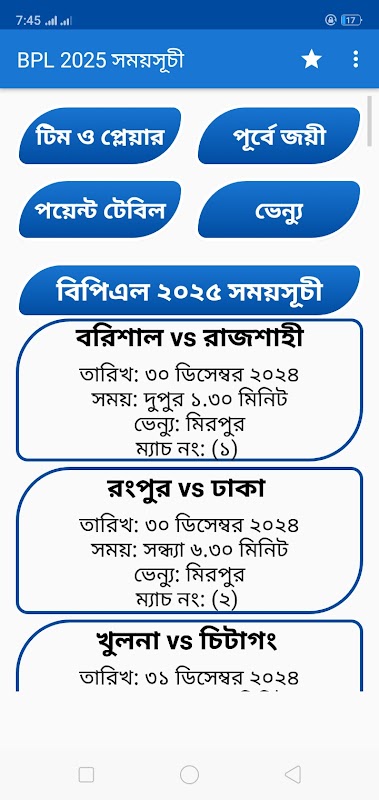 Это место в премьер-лиге находится в ведении Совета по крикету Бангладеш. Это мероприятие проводится, мягко говоря, с размахом. Почти все любители крикета в мире наслаждаются этим сиденьем. Поэтому мы подготовили это приложение bpl 2025, чтобы они могли получить различные преимущества и воспользоваться этим местом, чтобы они могли легко узнать расписание Премьер-лиги Бангладеш.