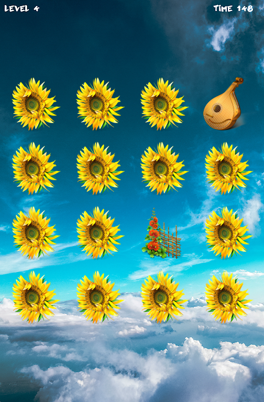 Найдите все одинаковые пары картинок на игровом поле. Нажмите следующий уровень и появится новый набор из картинок.