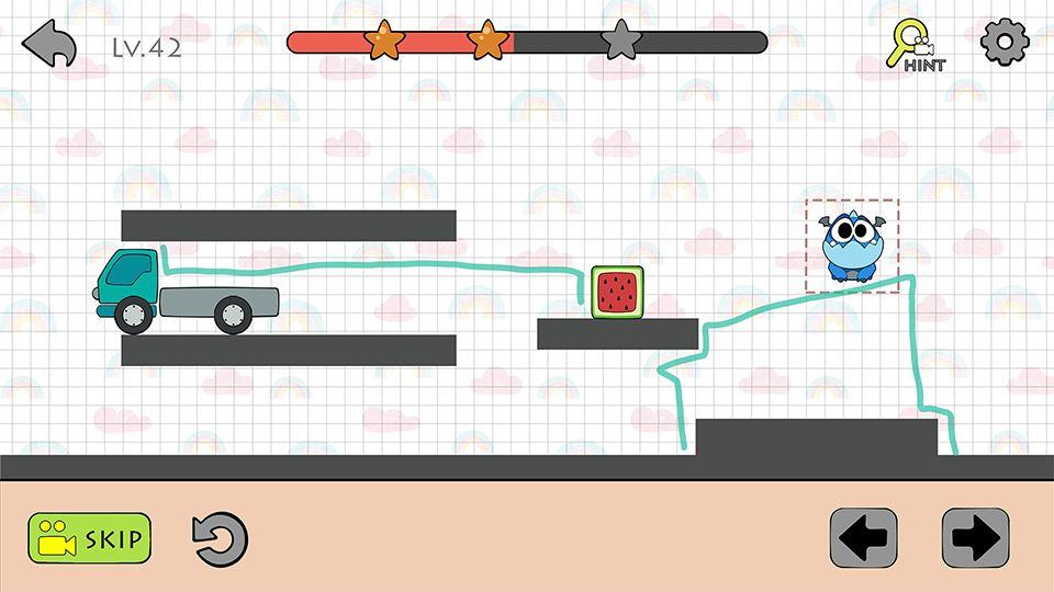 Your baby dinosaur is so hungry. And there are a lot of delicious food. Let’s bring hamburger, donuts, meat, pizza, watermelon, etc. for baby Dino. But the road to success is never easy. Remember that, Draw Physics Line is a brain hacking game. Think carefully and drive the truck to bring the food to dino.