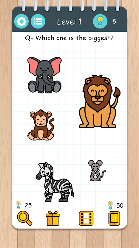Готовы принять вызов? Выглядит просто, правда? Поверьте, это не так просто, как кажется! С Brain Test: Brainy Puzzle Riddles вы получите массу удовольствия, проверяя свой интеллект. Вы хотите улучшить свой мозг и в то же время повеселиться? Если да, то вы в идеальном месте. По мере прохождения каждого уровня вы будете встречать гораздо больше забавных и сложных вопросов для мозга. Вопросы будут сложными и остроумными.
