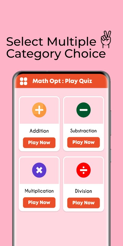 Оттачивайте свои математические навыки с Math Opt — увлекательным и интерактивным способом попрактиковаться в основах арифметики. Выберите категорию (сложение, вычитание, умножение или деление) и решайте задачи с 4 вариантами ответов. Каждый тест короткий, увлекательный и разработан для развития скорости и точности.