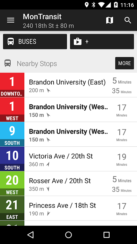 После установки этого приложения приложение MonTransit будет отображать информацию об автобусах (расписание...).