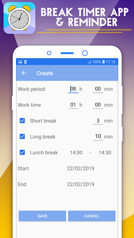 ✍ Тайм менеджмент очень важен при выполнении любой работы. Тайм Менеджмент с Трекер Времени может помочь вам организовать свою работу и перерыв график в течение дня. Доказано, что слишком много сидеть вредно для здоровья человека. Люди, которые проводят слишком много часов сидя, работая или учась, могут иметь проблемы со здоровьем в будущем. Это означает, что вы должны управлять своим временем, чтобы улучшить время учебы и перерыв. Наше интервальный таймер позволит вам планировать перерыв в любое время. Напоминание о перерыве - идеальное приложения для планирования, которые слишком много работают и забывают делать перерывы
