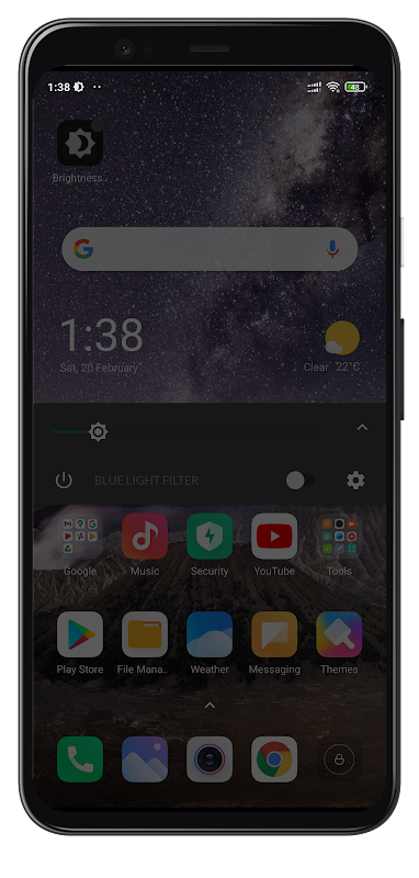 Это приложение применяет наложение фильтр, который действует как диммер для затемнения экрана.