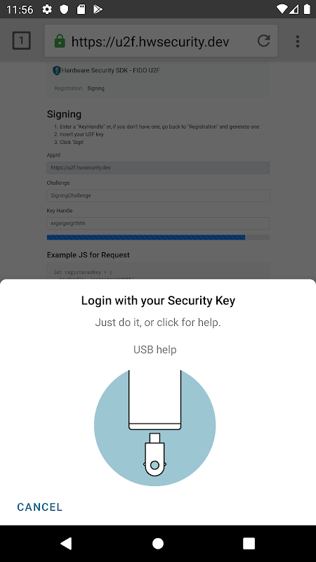Наш SDK предоставляет клиент FIDO для Android, который работает с ключами безопасности (аутентификаторами FIDO), такими как YubiKeys, через NFC и USB.