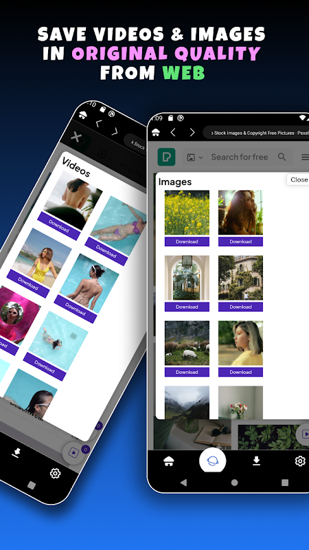 Просматривайте информацию с уверенностью, используя наш встроенный браузер, который уделяет приоритетное внимание конфиденциальности. Загружайте видео и изображения с веб-сайтов безопасно, используя режим инкогнито. С нами ваши секреты в безопасности! 🕶️🔒