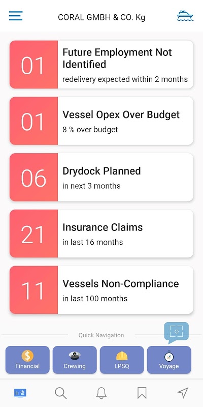 • Контролируйте свои суда: смотрите текущее положение вашего судна, прошлые пути и предстоящие действия, а также всю необходимую оперативную и финансовую информацию, которая вам нужна.