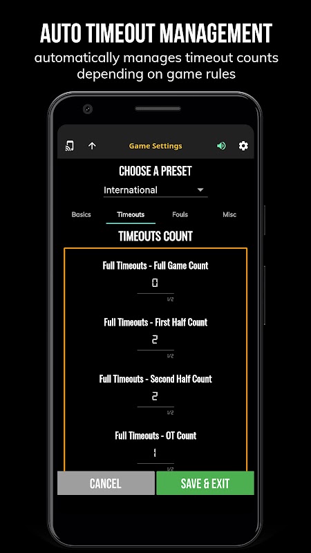 - Удобные предустановки правил (международные, 3x3, US Pro, College, High School и т. д.)