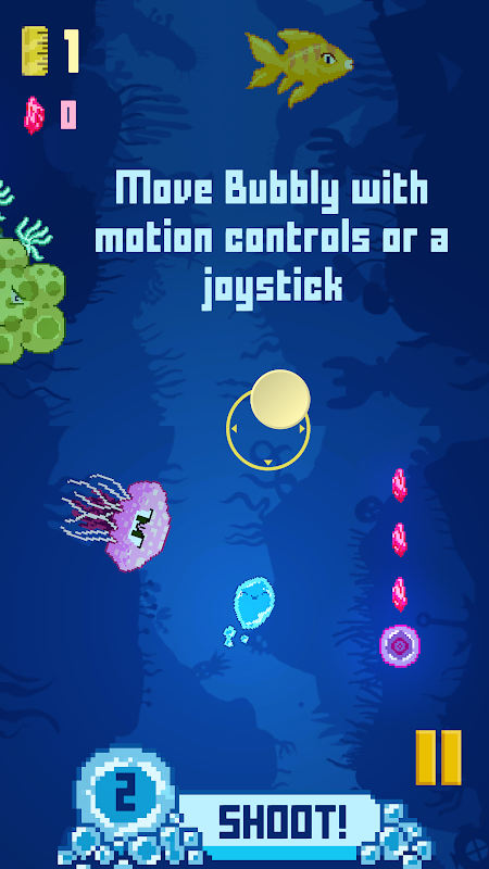 Присоединяйтесь к Bubbly в его захватывающем путешествии на поверхность. Используйте Bubble Gun, Turbo или Sonic wave, чтобы расчистить путь врагам. Маневрируйте в труднодоступных местах, пересекая океан, используя элементы управления движением на телефоне или джойстик. Эта сложная игра увлечет вас на долгие часы. Готовы ли вы поп?