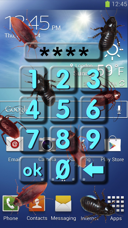 You can change size, speed and amount of the bugs. The final look of lock screen prank depends entirely on you. Bug lock screen prank is fully interactive, all objects react to your touch.