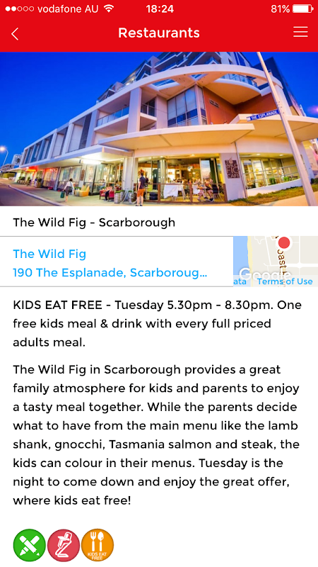 Приложение Buggybuddys делает поиск вещей, чтобы сделать с детьми в Перт ветер. Используя интуитивно понятный и простой в использовании карты, вы сможете узнать, что Перт достопримечательности, подходящий для семей рестораны, водные развлечения, парки и детские площадки рядом с вами или рядом с площадью, которые вы посещаете. Приложение может даже дать вам направление на место, куда вы направляетесь.