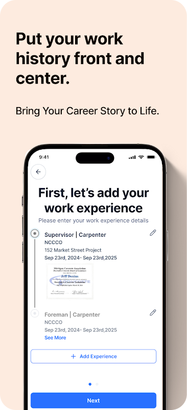 BuilderFax — это ваш надежный цифровой кошелек для удостоверений, созданный специально для профессионалов в строительстве. Являетесь ли вы плотником, электриком, сантехником или сварщиком, BuilderFax поможет вам безопасно хранить, просматривать и делиться вашими сертификатами, лицензиями, записями об обучении и членстве — все в одном месте.