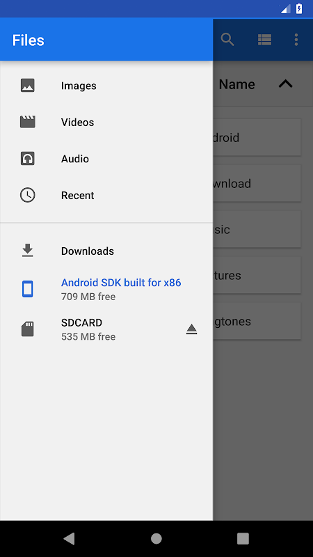 tap the menu button and select "Show internal storage” to see your device's internal storage.
