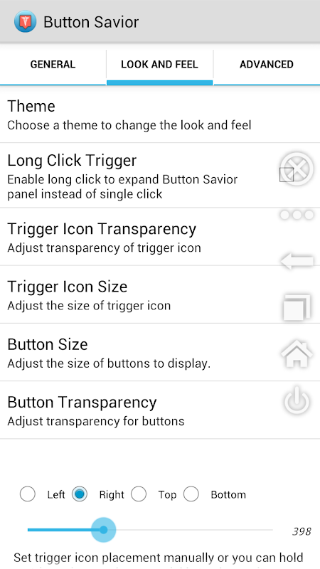 ☆ (НОВИНКА) Проведите пальцем, чтобы отобразить панель Button Savior с обеих сторон.