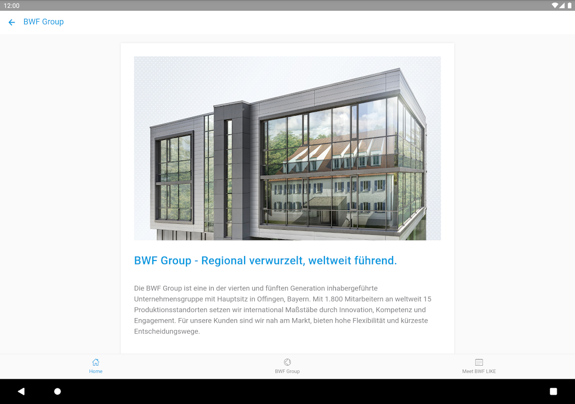 BWF LIKE+ — это центральное коммуникационное приложение группы BWF — ведущего производителя текстильных фильтрующих материалов, технического войлока, шерстяного войлока и пластиковых профилей.