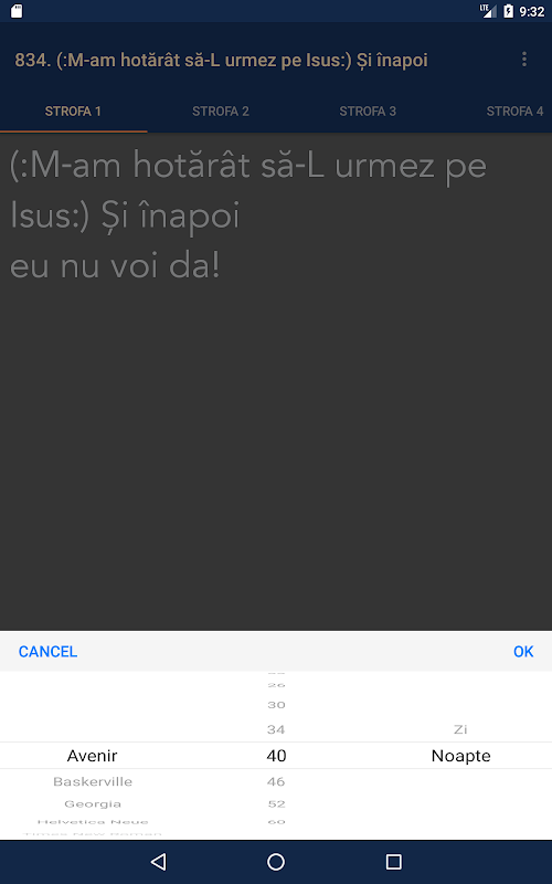 Felul în уход Сюнт afişate cântările poate фи personalizat modificând fontul, dimensiunea textului Сау Tema. Sunt disponibile Doua Тема: "Zi" şi "Noapte".