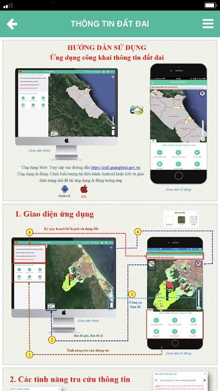 - Người dân xem được thông tin đất đai, quy hoạch xây dựng trên địa bàn tỉnh Quảng Bình bằng Smartphone theo một trong các tình huống sau: