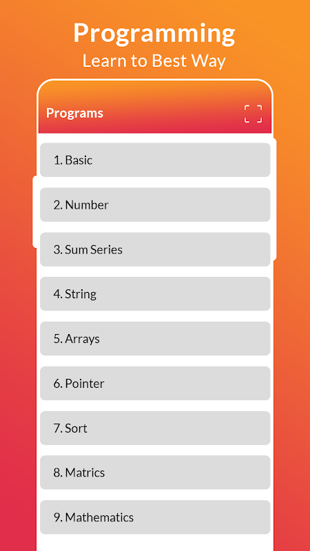This C language Application Provide to still your developing stage is level up so you can learn the too easy way.