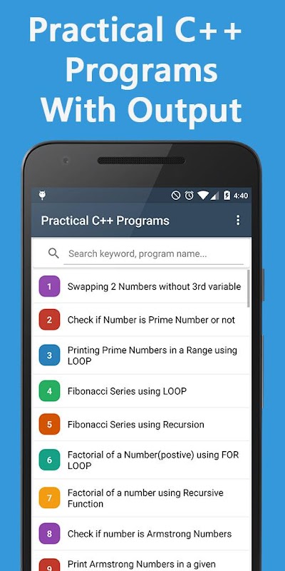 Practical Programs: Intermediate C++ Programs with output for beginners and students. These programs are generally asked in University Practical Examinations