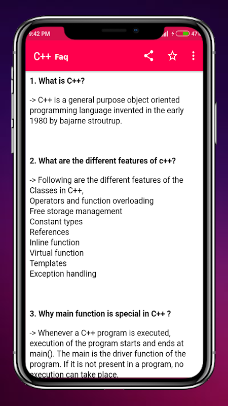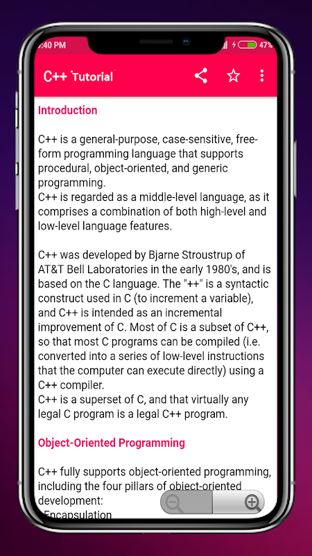 Tutorials for C++ Offline is a complete application for those of you who want to learn C++ easily and for free. There are dozens and even hundreds of C++ tutorials starting to base for beginners to advanced. All these tutorials you can read offline without the need to connect to the internet or mobile data.