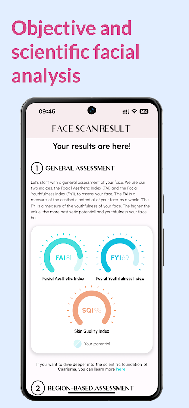 Caarisma анализирует более 60 черт лица, включая симметрию, морщины, объем и текстуру кожи, чтобы создать ваш уникальный эстетический профиль. Алгоритм, основанный на искусственном интеллекте, позволяет проводить точный и объективный анализ ваших лицевых ориентиров в сравнении с лицевым эстетическим индексом (FAI) и лицевым индексом молодости (FYI), чтобы дать вам беспрецедентное представление о ваших уникальных эстетических качествах и потенциале.
